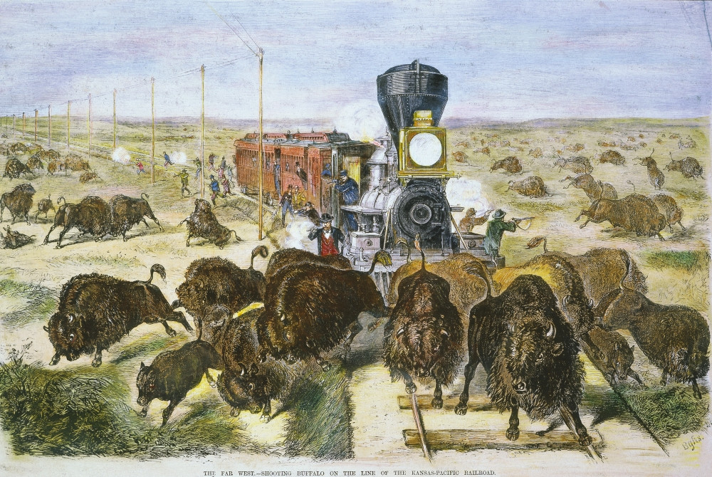 Rr Shooting Buffalo 1871 Npassengers And Crew Shooting Buffalo Along The Line Of The Kansas Pacific Railroad Line Engraving 1871 Poster Print By Granger Collection Item Vargrc0008500 Posterazzi